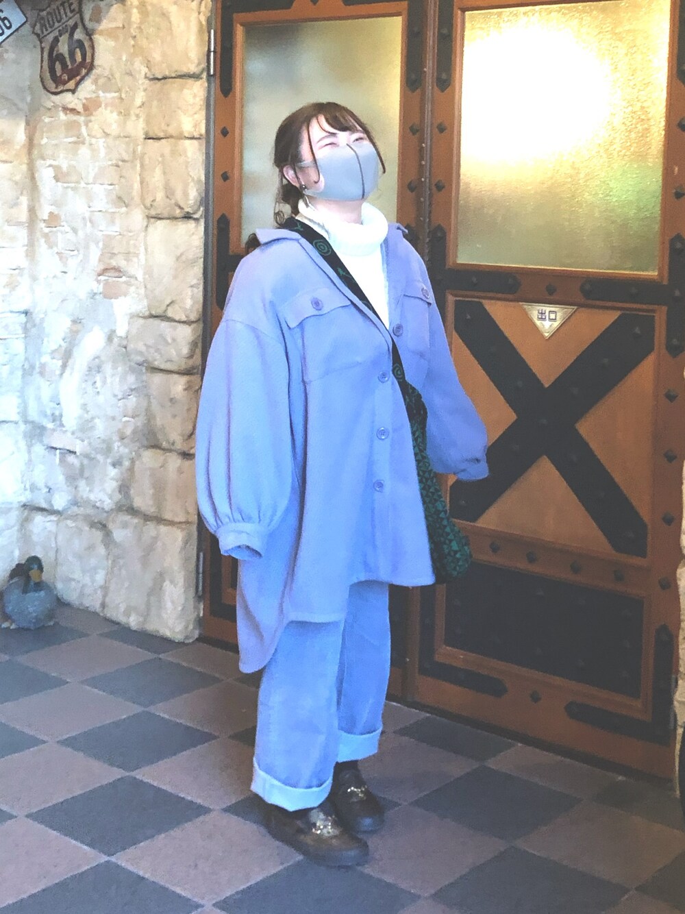 セットアップ風コーディネート! 女の子らしいパステルカラーの紫が 大好きで上下で合わせてみました! 中に着てるニットは着回しが 何通りも出来るアイテムなので 春先にもってこいの物です! それと小物で私らしく個性を 出してみました!