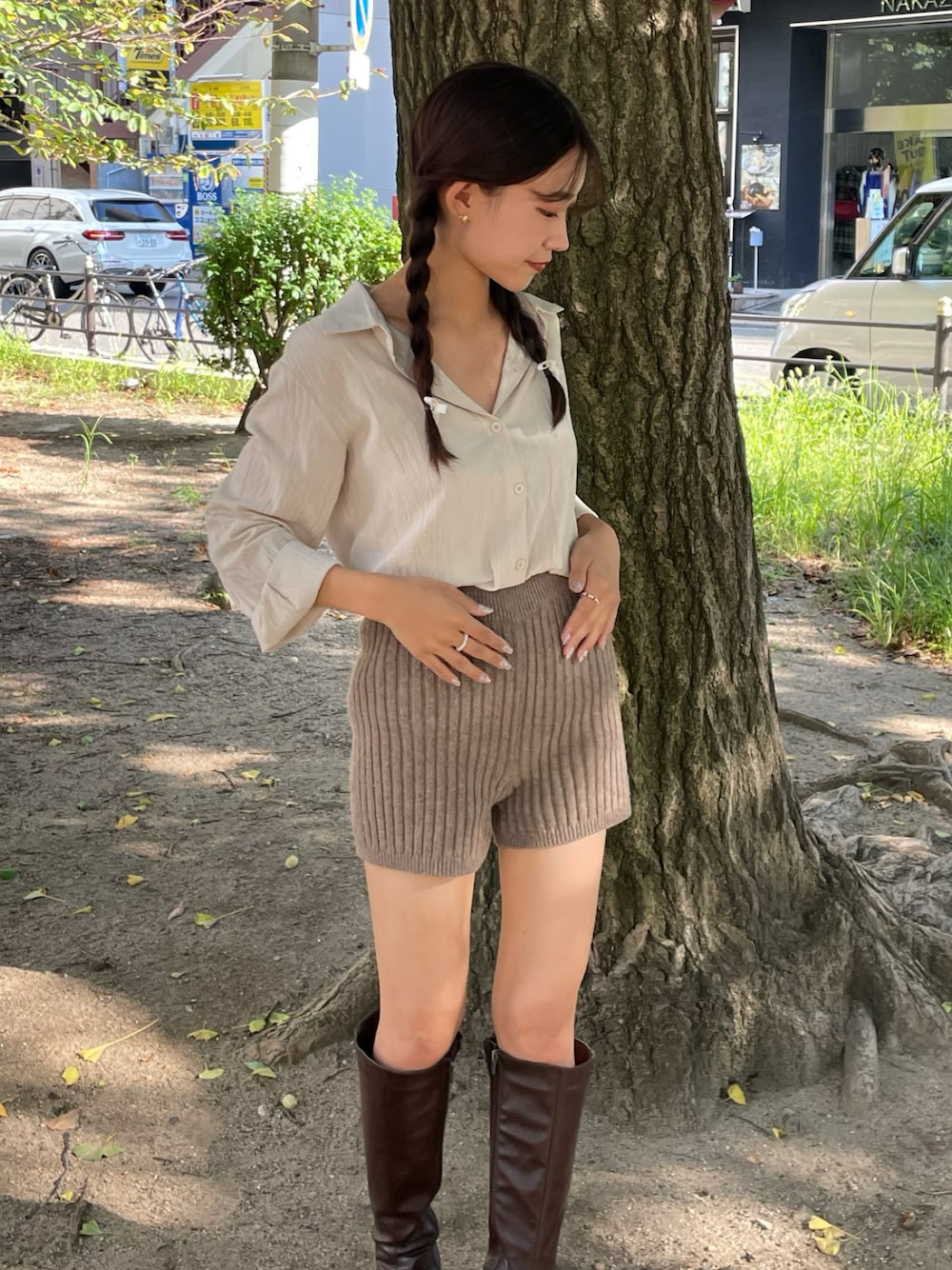 秋先取りコーデ🍂🤎 まだまだ暑いけどロングブーツとシャツで一気に秋っぽく!