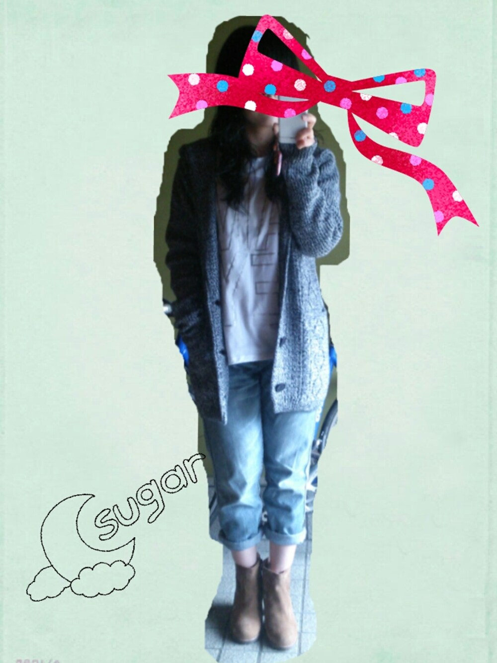 暖かくなってきました ジーンズ……RNA ニットカーデ……X-giri