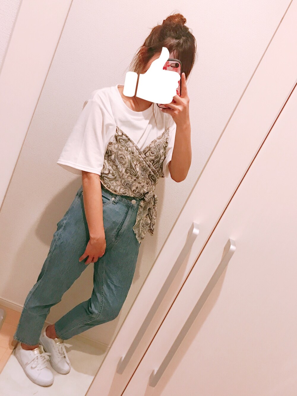 あーりのTシャツ/カットソー「スカーフビスチェT」を使ったコーディネート