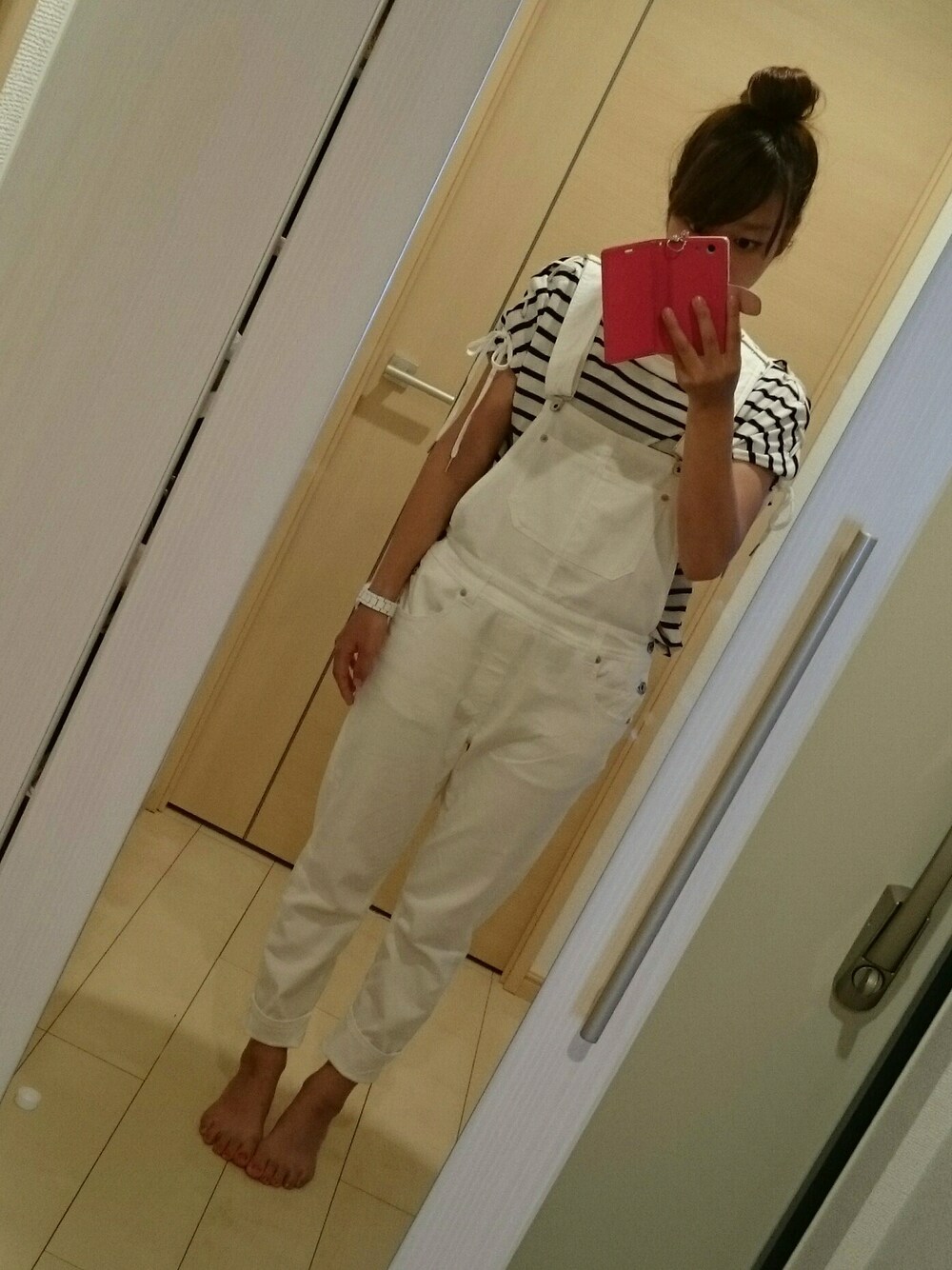 #念願の白サロペ #ついこないだげっと💓 #嬉しくてすぐ着る #単純 #よくゆえば素直 #今から実家帰るよ #ぱぱのお迎え〜~