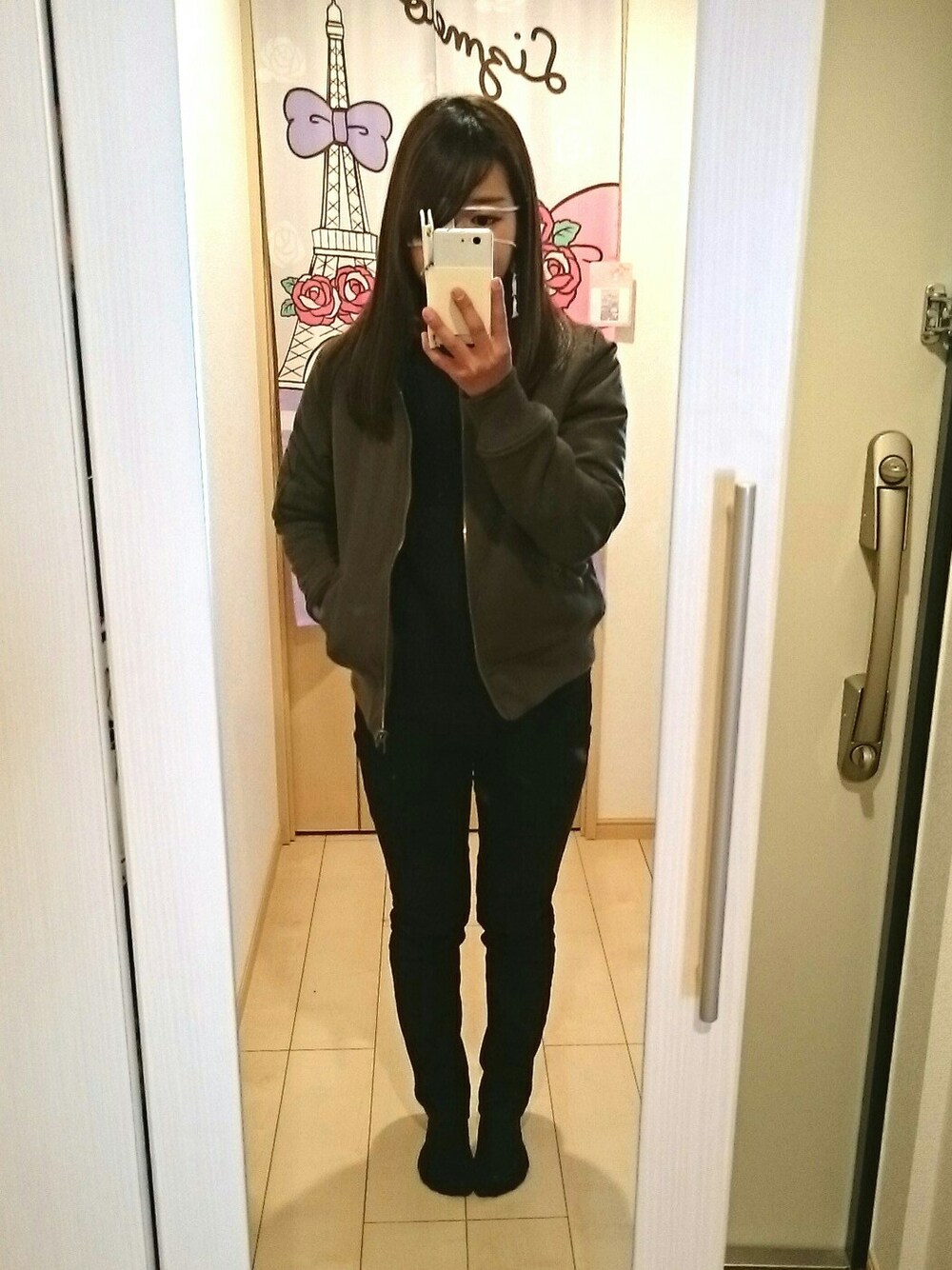 #真っ黒コーデ #にみえるけど #紺色ニット #寒いと思ったのに #暖かくて #びっくり #目にバイキン👿 #1週間 #眼帯生活 #左目開けないでください #ってゆわれた #常に #ウィンク状態 #つらい #右目の 視力 #悪くなりそう #(´-_-。`)