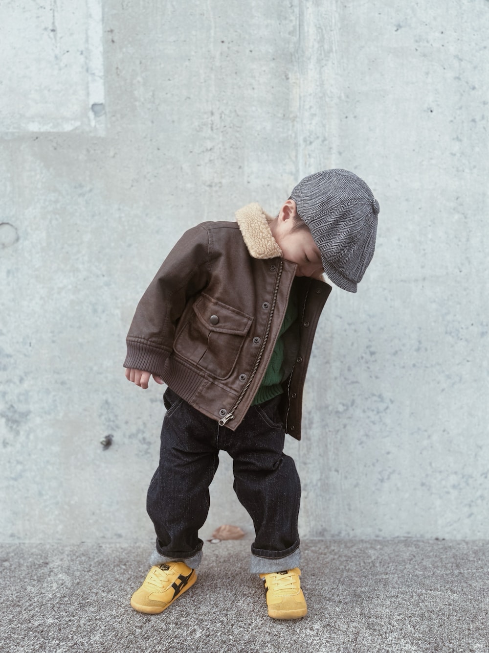 フェイクレザーのジャケットに暗めのデニムを合わせました!