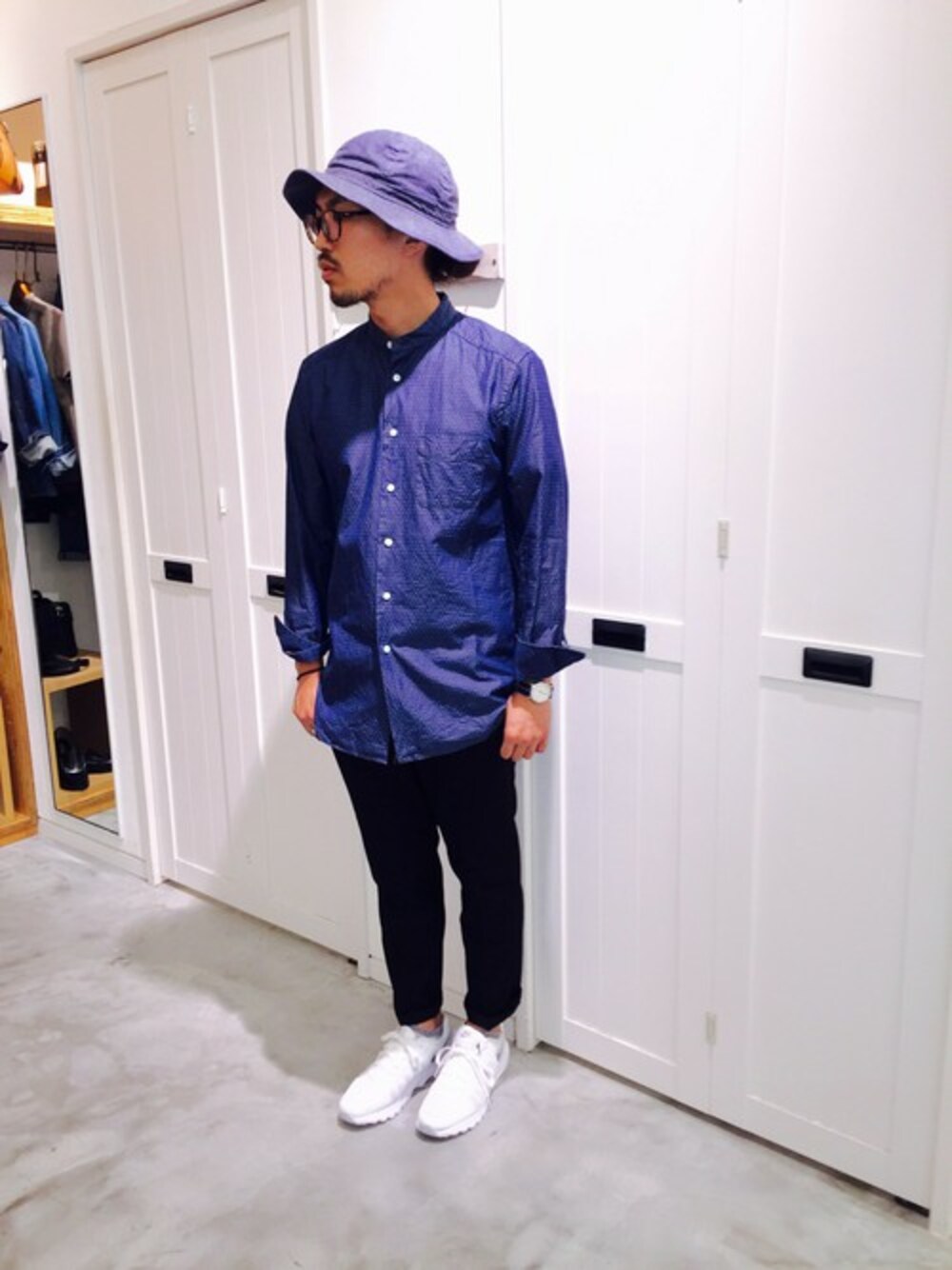 戸村 泰輔のシャツ/ブラウス「インディゴドビーバンドカラーシャツ」を使ったコーディネート