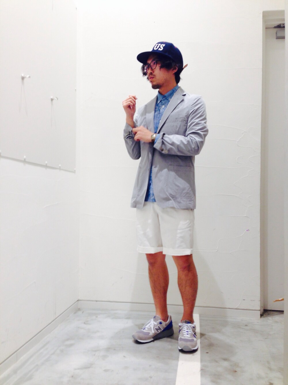今季のJKコーデ。 白のチノショーツ、NB999、DEUSのメッシュキャップでシティボーイ風に!