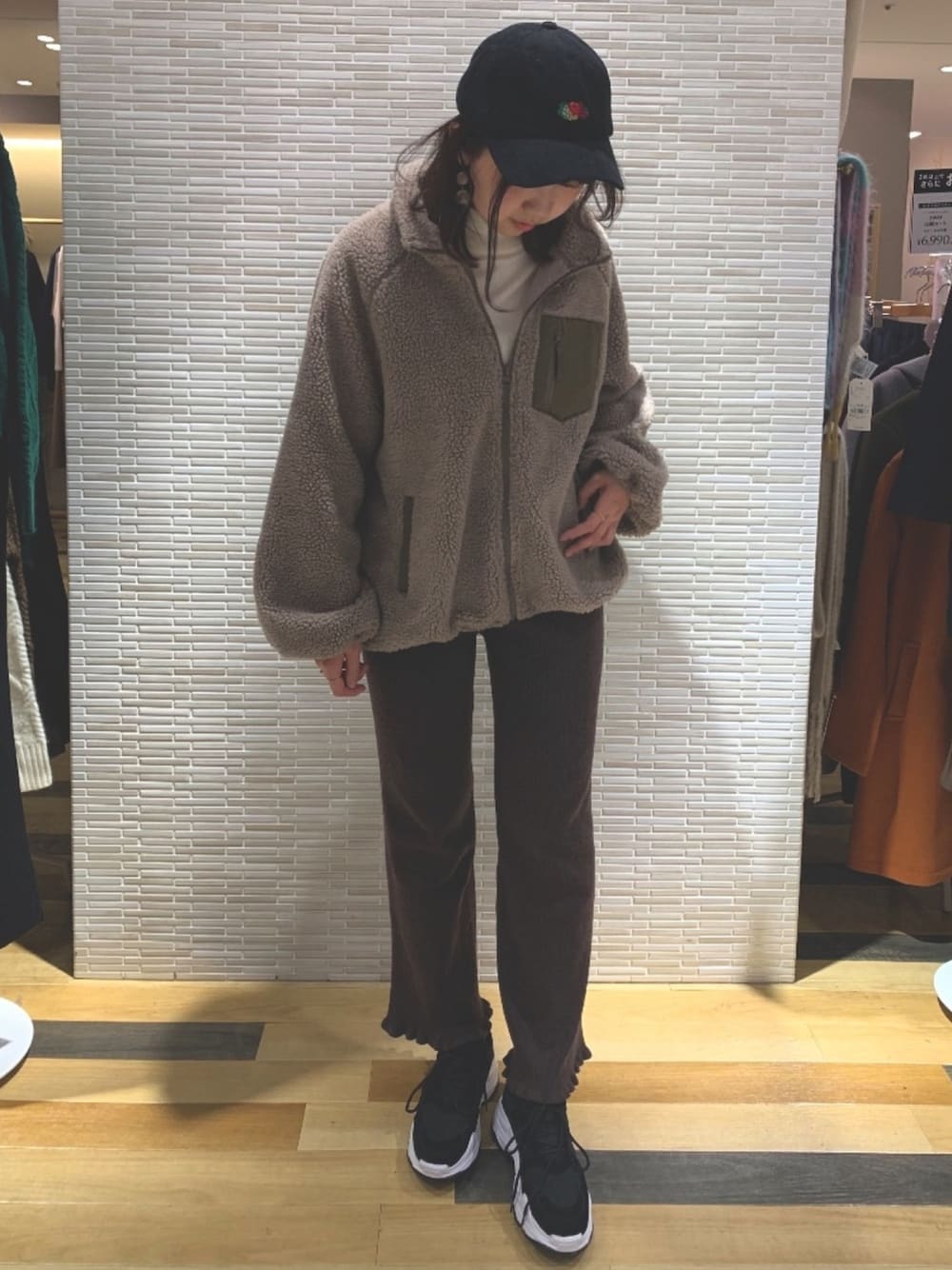 ボアとニットパンツで冬コーデです⛄️ ニットパンツはとても柔らかいので動きやすく、ボアのブルゾンもゆったり着れるので窮屈感なくこれも動きやすいです!そして暖かい!🥺 スニーカーもいい感じに盛れるのでオススメです🧡
