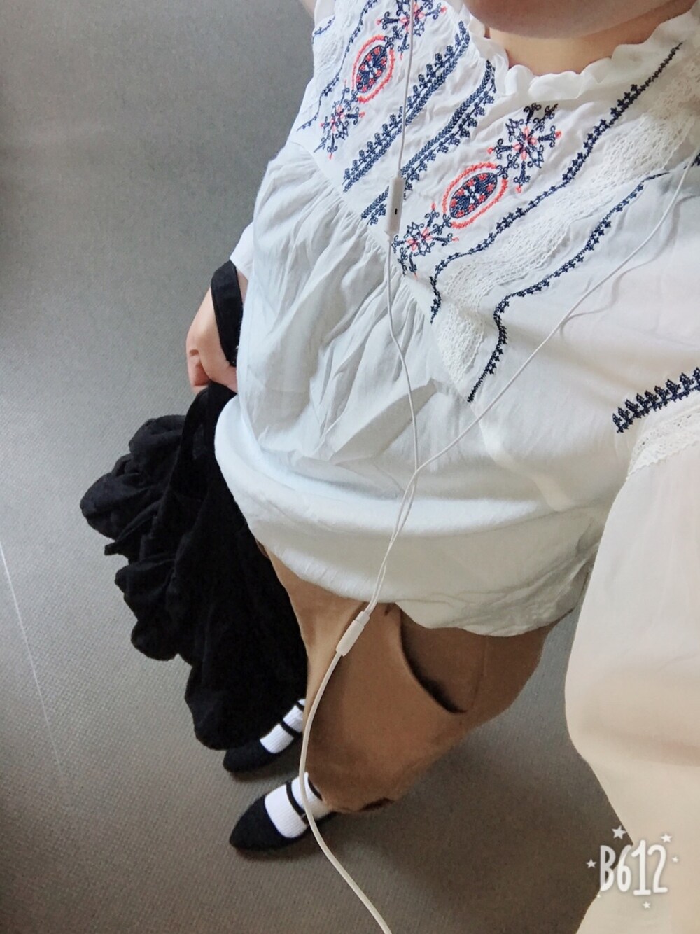 erer6のシャツ/ブラウス「シシュウソデフレアブラウス8分袖/776436」を使ったコーディネート