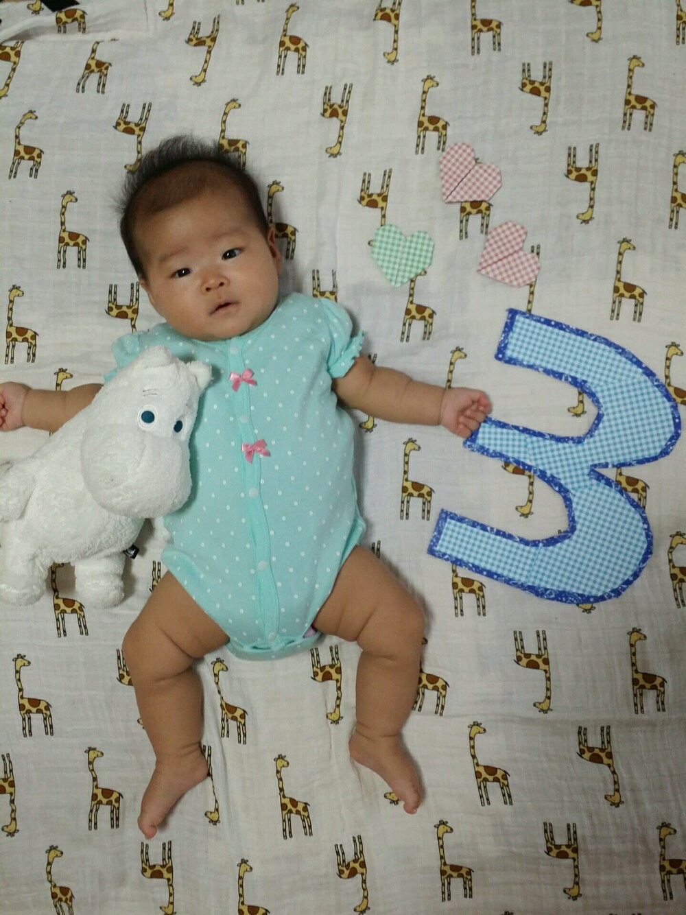 3ヶ月突入💕 今日もどこかのおばあちゃんにお姉ちゃんたち『弟さん、かわいいね~』と言われて苦笑いwww