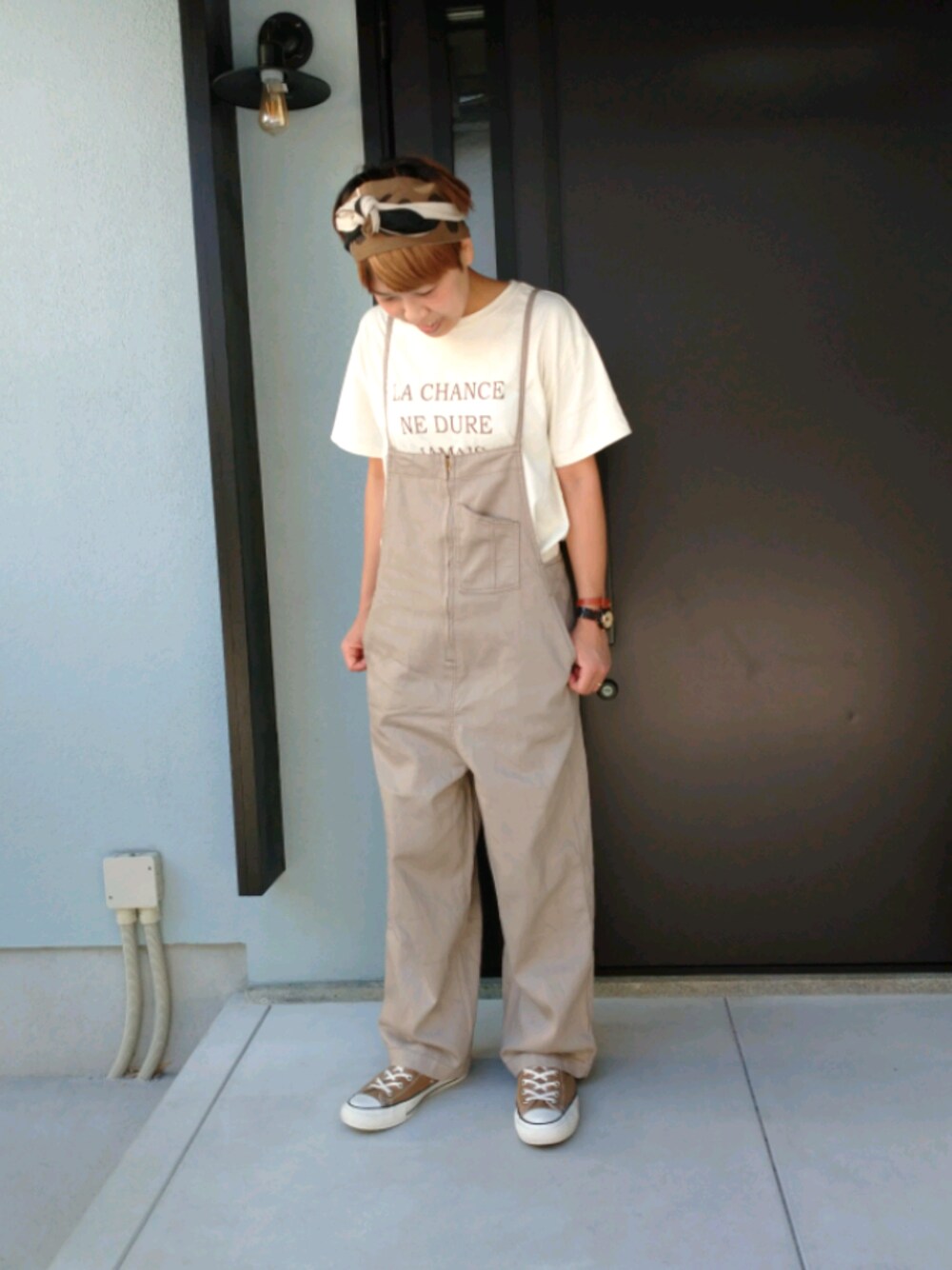 sm2blueの新作、エコデニムサロペットは柔らかくて軽い。 サマンサにしては細身な作りです。 後ろで紐を結んで長さ調節できます! ガーリーなブラウスを合わせるのもかわいいと思う。 ターバンは自作の新作。