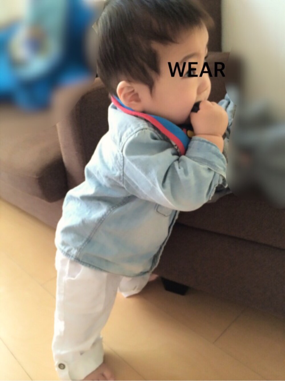 ブルー系のシャツ/ブラウス、ホワイト系のその他パンツを着用したレディースの春コーディネートの1枚目の写真