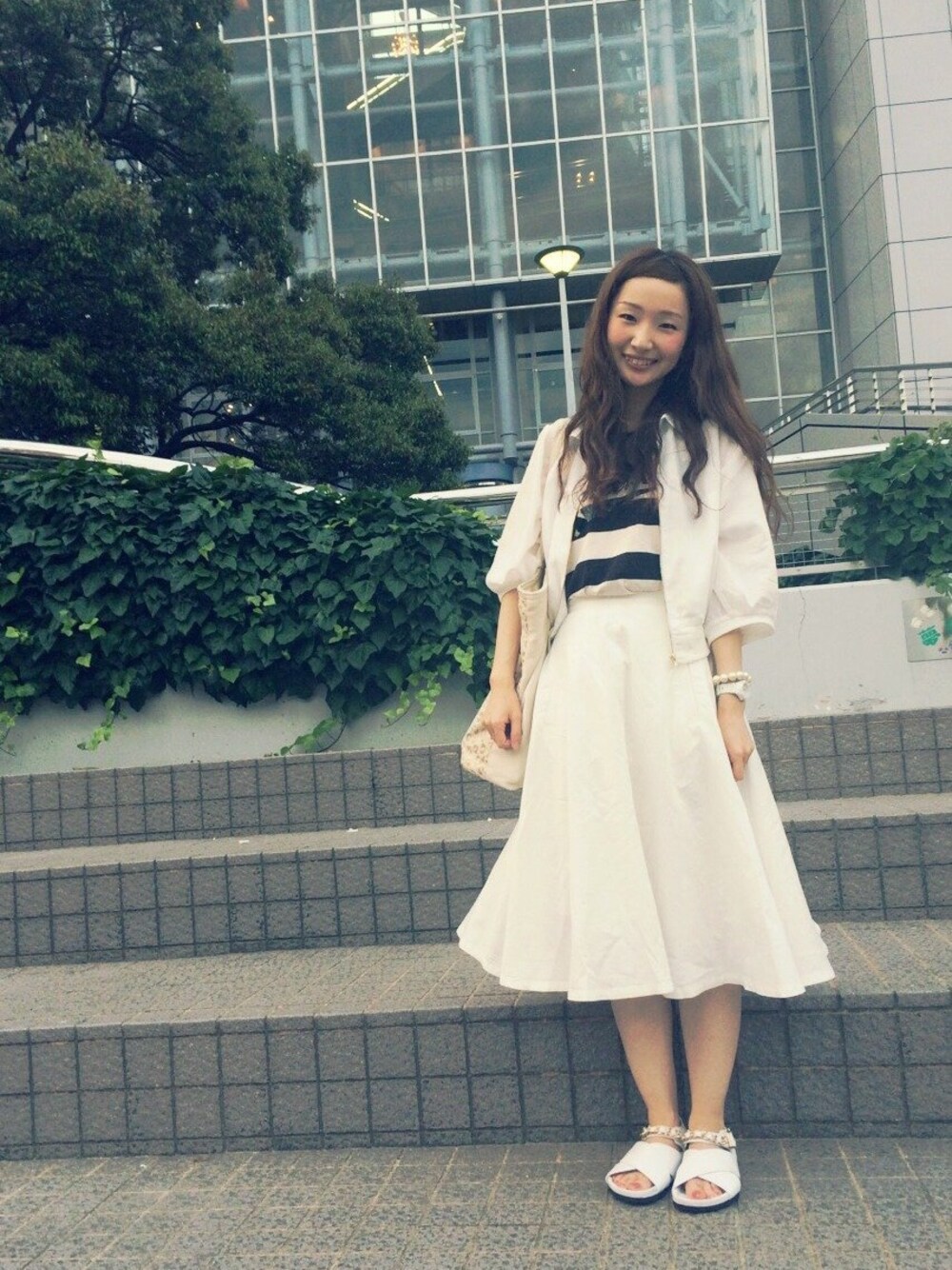 今日は仕事のあと友達とご飯ヾ(@⌒ー⌒@)ノ 珍しくオールホワイトコーデ\(^o^)/♡ 新しく買ったものいっぱい着ました!!