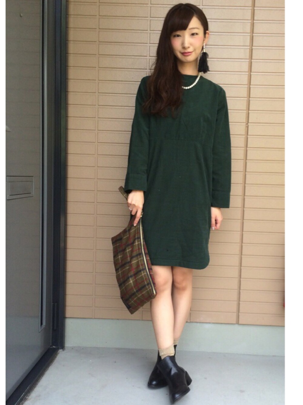 コーデュロイのワンピースは 形が綺麗で一目惚れ\(^o^)/ クラッチ合わせで大人っぽく◎