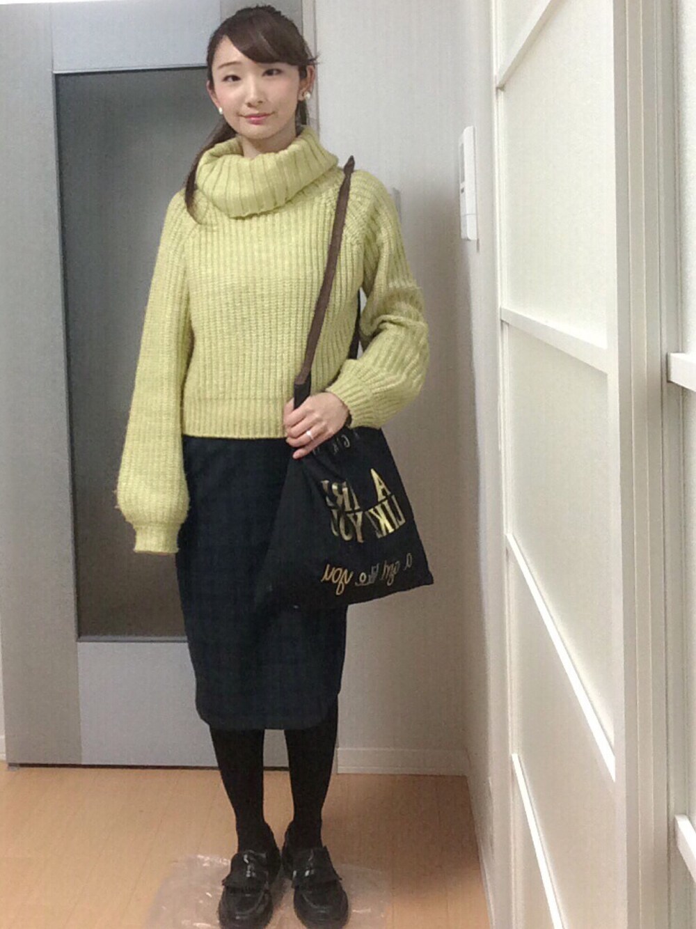 連続更新失礼します(>_<) ボリュームのあるトップスに お気に入りのチェックのスカートを 合わせました♪ 他は黒でまとめました(^_^)