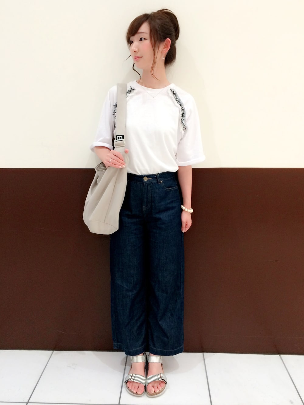シンプルにまとめました◎ サンダルのストライプ柄や Tシャツのフリンジがポイント*\(^o^)/*