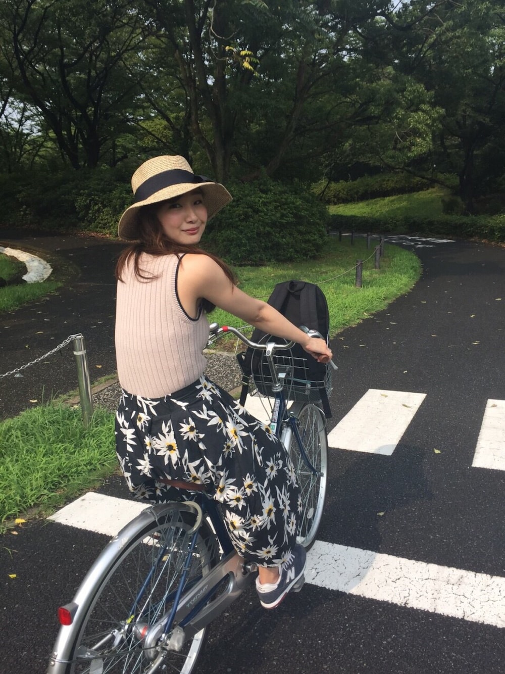公園でサイクリングヾ(@⌒ー⌒@)ノ 動き回る日だったので 紫外線対策で帽子+スニーカー♪