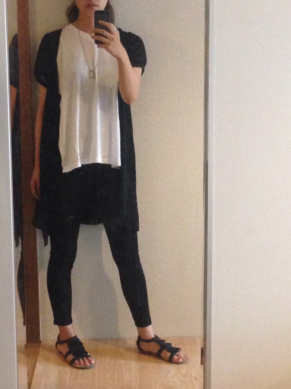 夏だけど、黒スキニー履きたくて。 セールで夏用買ってみた。 去年、何枚か買ったユニクロのパックTの後ろを両サイド、背中にハサミを入れてみたら意外といい感じ…🤔