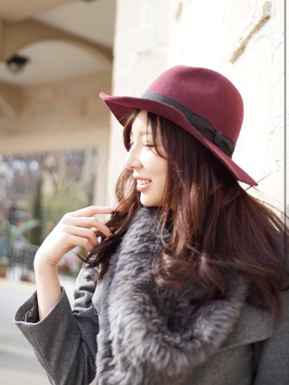 ハット流行ってる(^^)。ボルドーのハットはあんま見ないから好きだなー(*^^*)