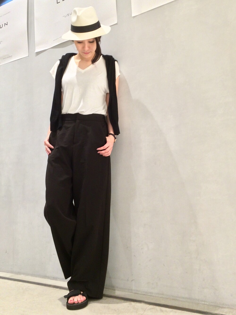 ワイドパンツにスポーツサンダルで今年らしく。 スイコック、とっても楽でオススメです! それぞれのアイテムを生かす為、あえてモノトーンのシンプルなコーデにしました!