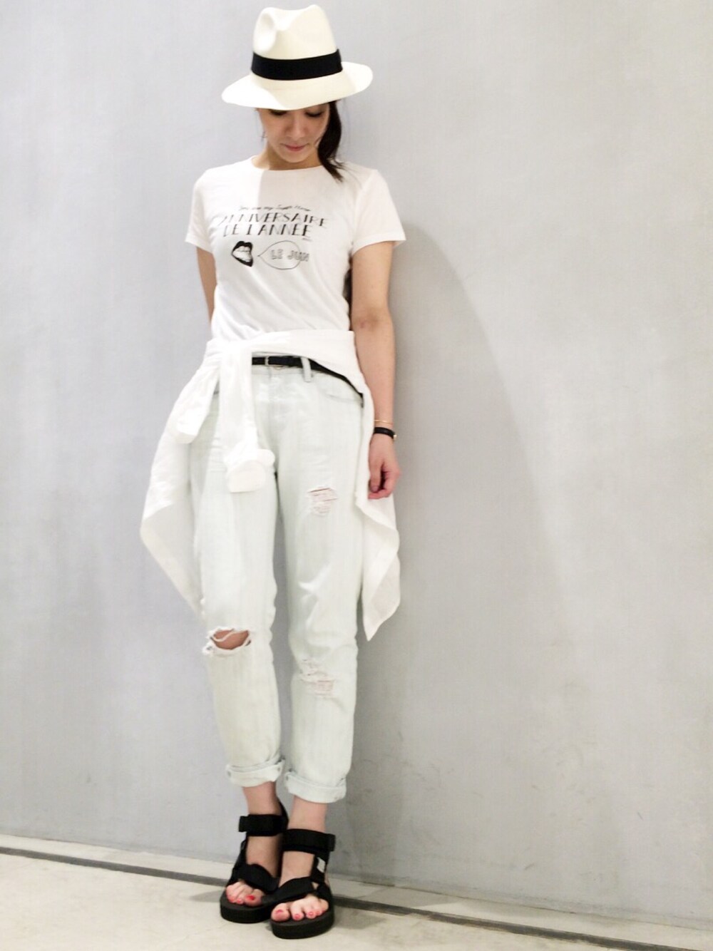 LE JUNモザイクモール港北店1st anniversary Tシャツが入荷しました! イラストレーターWALNUTが描いたオリジナルプリントです。 可愛くてオススメですよー! Tシャツメインのホワイトコーデにしてみました!