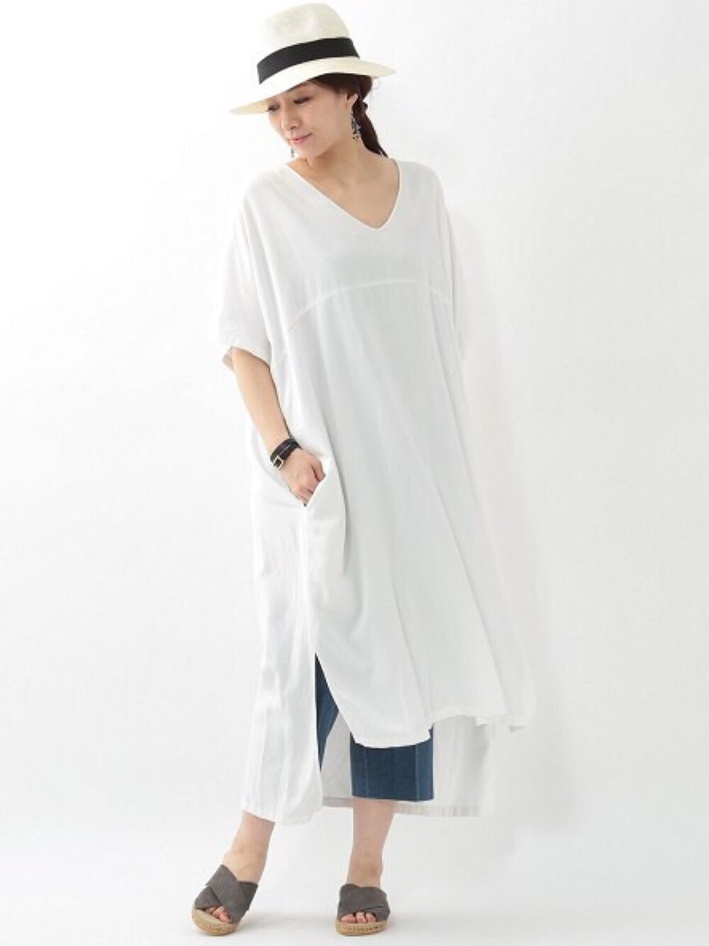 ERIのワンピース「Vネックジェラバドレス」を使ったコーディネート