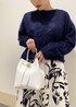 年末年始のお休みにオススメのコーディネートです♪ 高級感のあるニットに、柄物のスカートを合わせる事でバランス良く合わせました。 足首を出す事で、冬物でも抜け感が出て◎