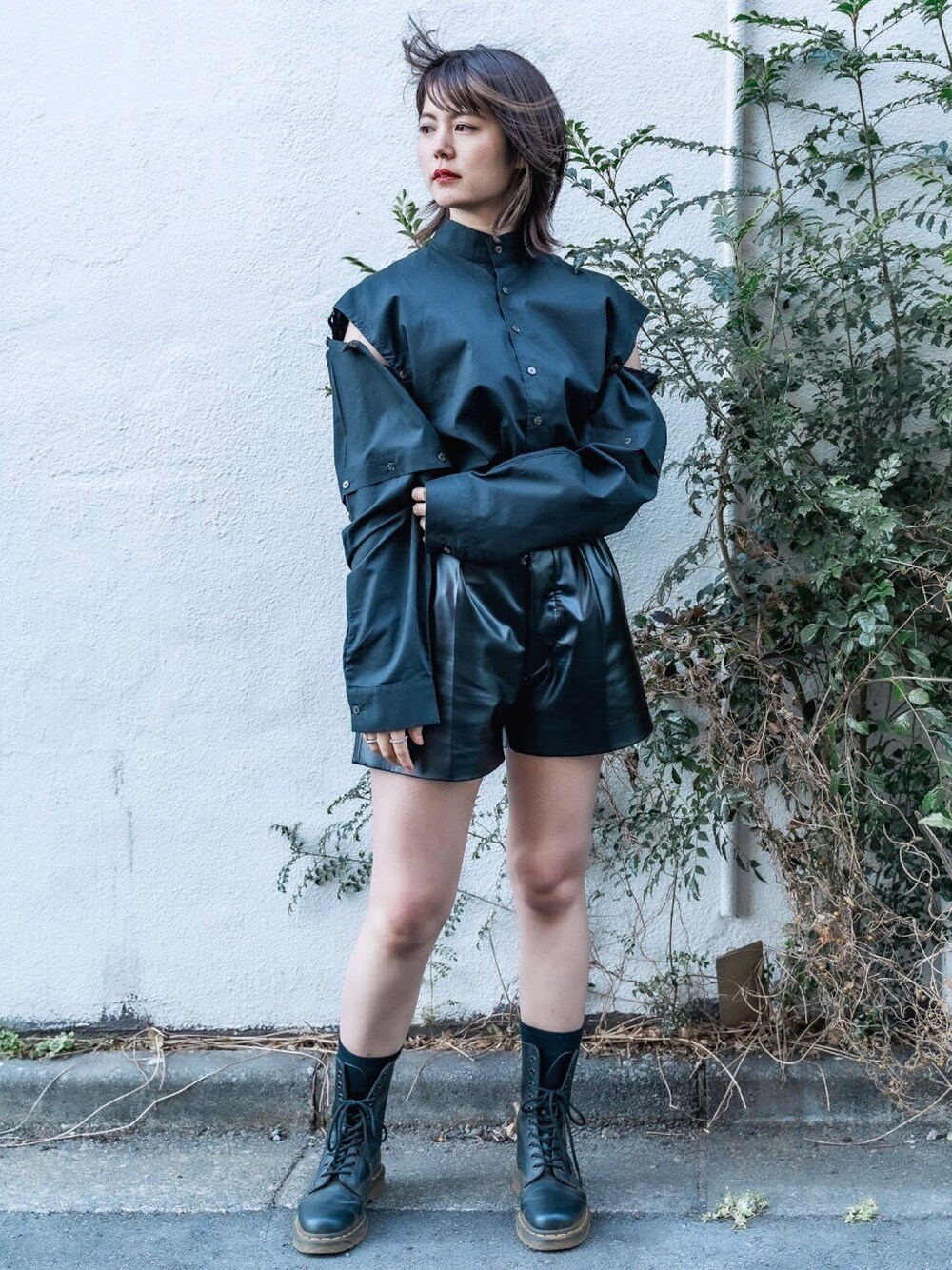 All Black🖤 春は風が強い🍃 髪の毛、フレーミングとインナーカラーが 良い感じに綺麗に出てて嬉しい☺️💕 《brand》 shirt : YohKi pants : Maison Margiela boots : Dr.Martens