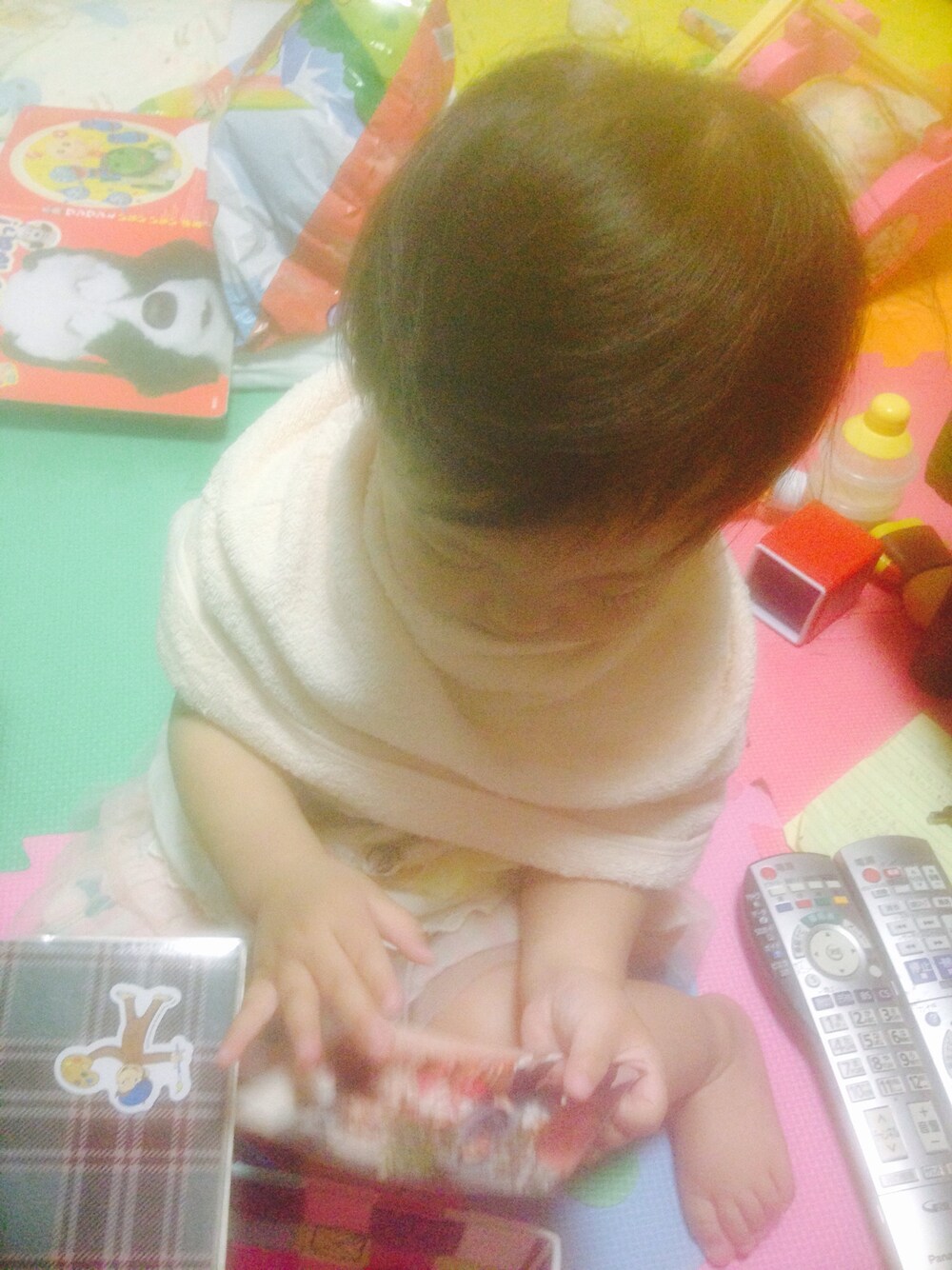 あまりにもヨダレが多すぎて1日4枚変えても追いつかないので、タオルを巻いてみました。w なんのコーデでもなくてすみません…