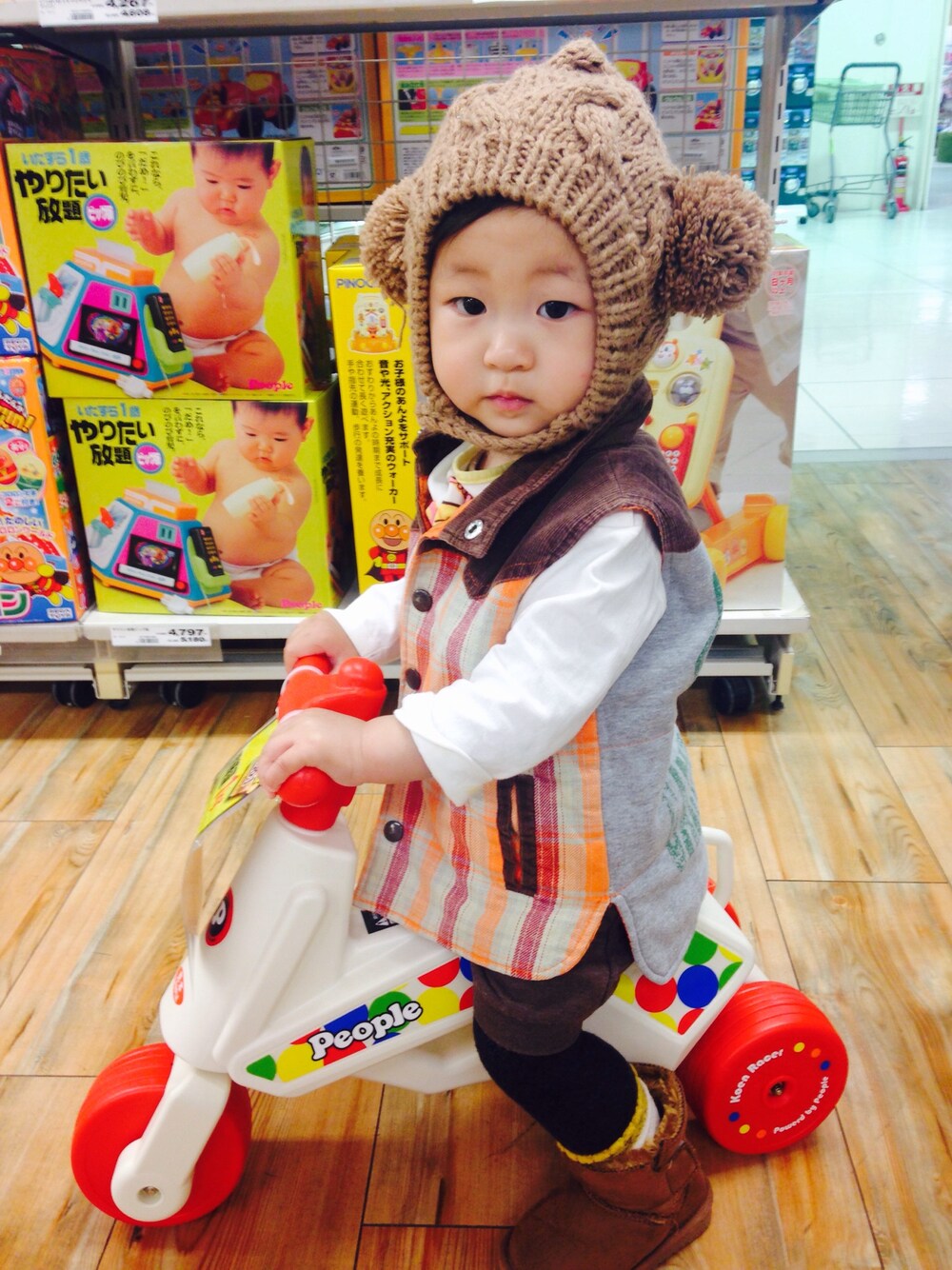 乗ってやったぜ! でもワタチ、アンパンマンにしか興味ないの‼︎ アンパンマンコーナーから離れてくれなかった…笑