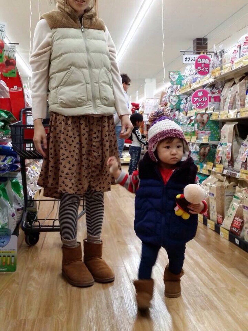 UUオソロで着ました〜 家族3人ムートンブーツ!娘だけしまむらでごめんね♡笑