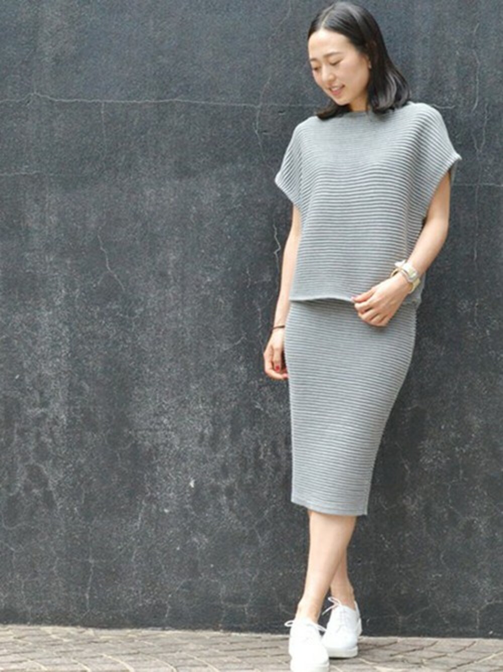 人気のサマーニットセットアップのグレーに挑戦!!! このセットアップ本当に人気で、最後の再入荷です。 真夏まで使えるセットアップはアクセでフォーマルシーンにも活躍させてほしいです。 タイトニットスカートは今季マストなサンダルコーディネートにも◎です!