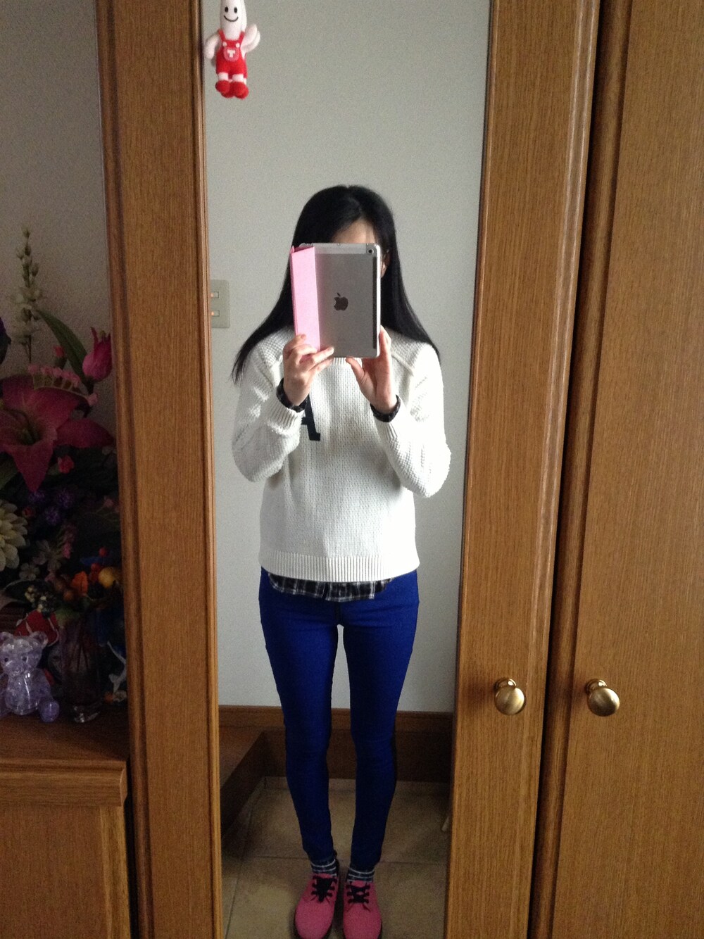 最近多いパンツスタイル! JEANASISのチェックシャツにロゴセーターにANAPのバイカラーパンツ。 正面からではバイカラー分かりにくいけど(^_^;) このパンツ、お気に入りです♪