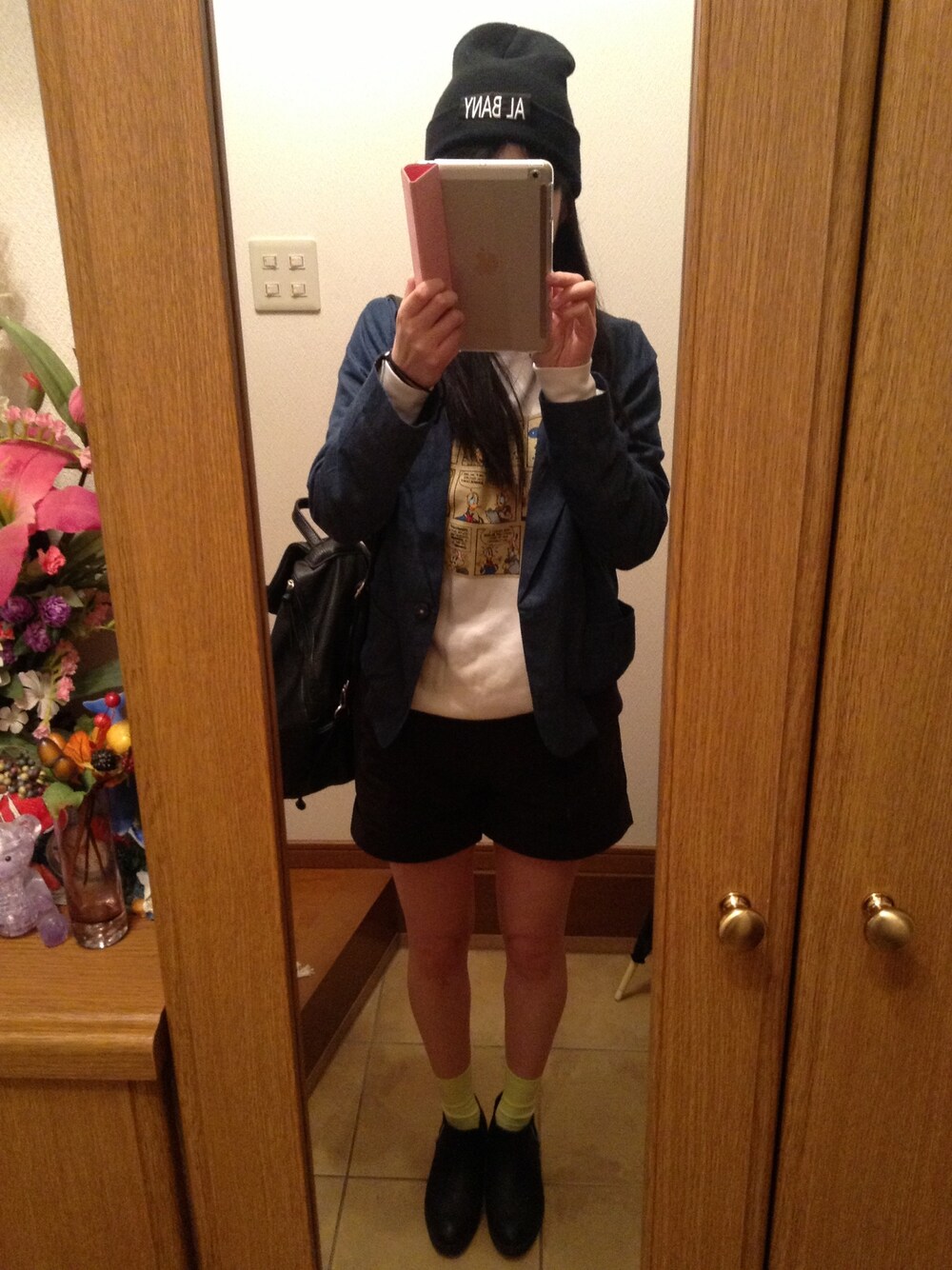 ジャケット:JEANASIS スウェット:Disny 高橋愛プロデュース I am スウェット ショートパンツ:JEANASIS ソックス:ABCマート ショートブーツ:JEANASIS ニット帽:JEANASIS リュック:JEANASIS 高橋愛ちゃんプロデュースのスウェットが やっと届いたぁ💕 来年まで着れないかと思ったけど、 ギリギリ着れた✌ スウェット以外は今日もJEANASIS! 昨日とコーデが似てる(^_^;)