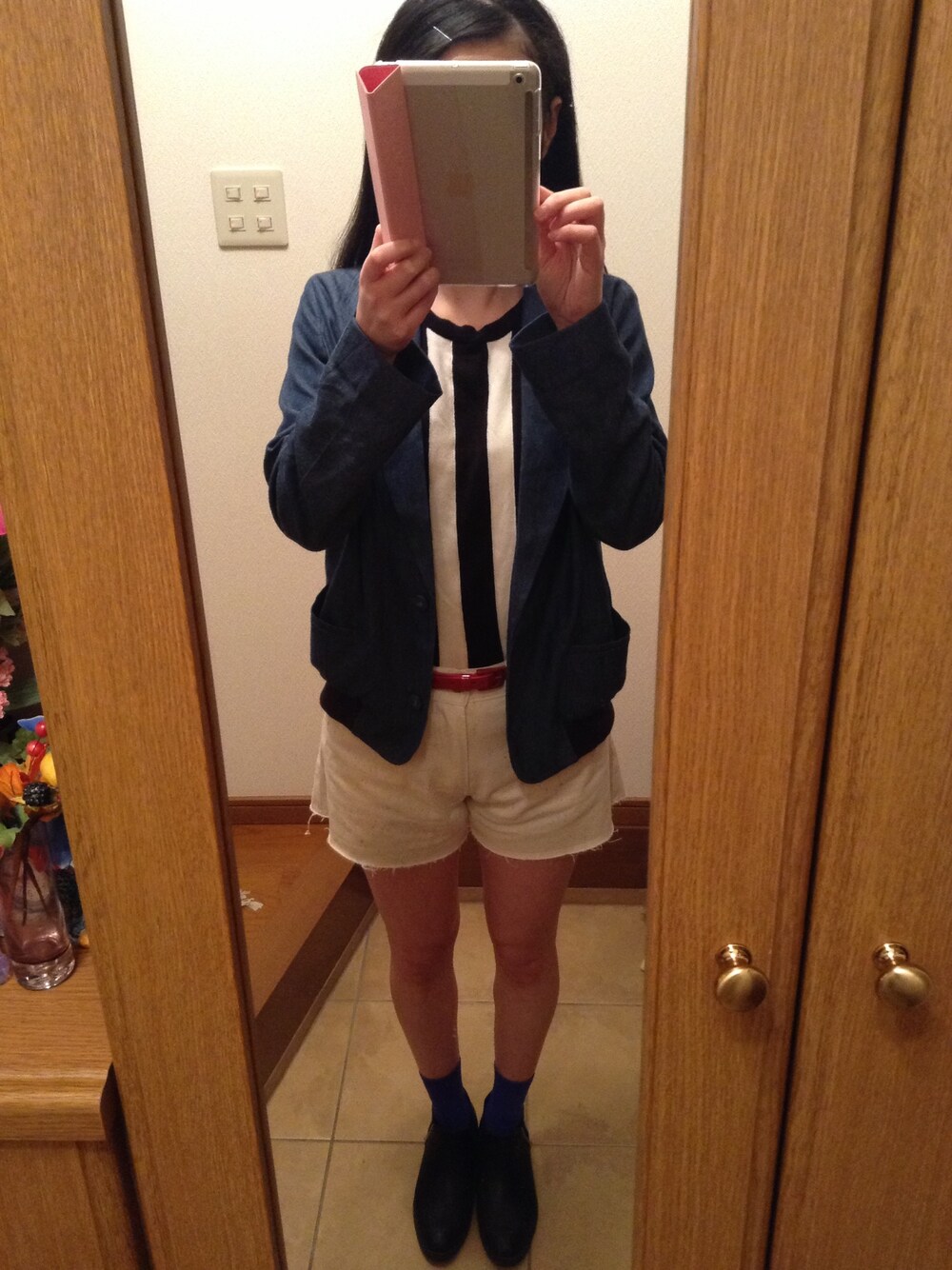 ジャケット:JEANASIS トップス:E hyphen world gallery ショートパンツ:E hyphen world gallery ベルト:JEANASIS ソックス:ABCマート ショートブーツ:JEANASIS 今日は思った以上に寒かった😖 なかなか暖かくならないなぁ。 JEANASISのジャケットが大活躍✌