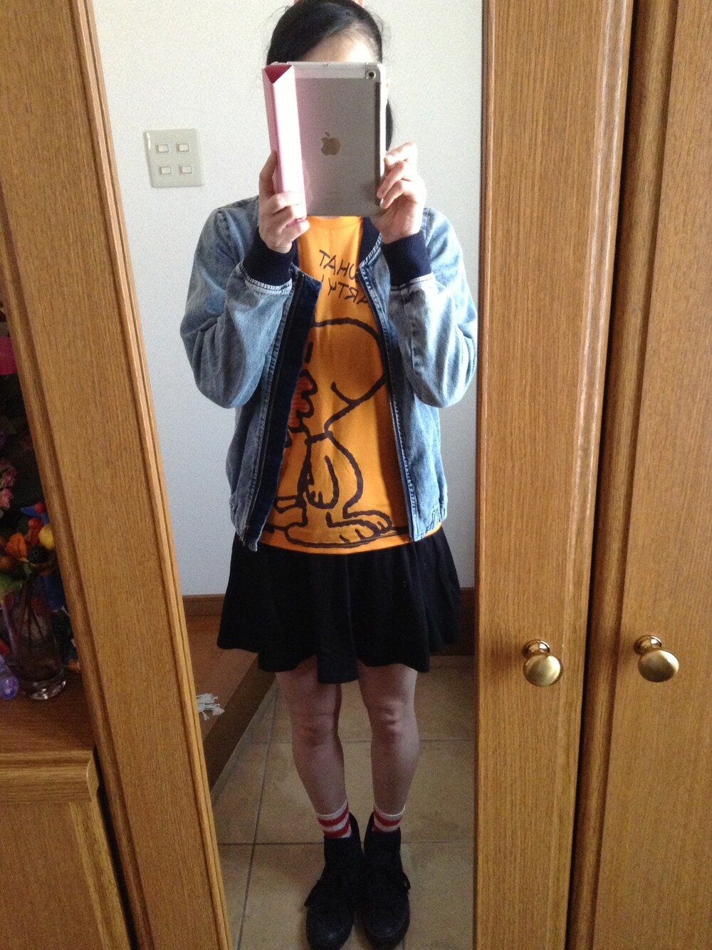 ブルゾン:Heather Tシャツ:UNIQLO スカート:H&M ソックス:tutu anna スニーカー:CONVERSE