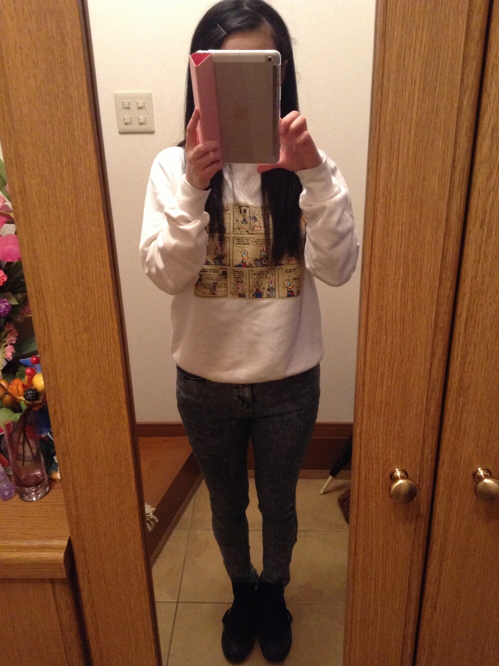 スウェット:Disny 高橋愛プロデュース I am スウェット パンツ:JEANASIS スニーカー:CONVERSE 今日は超楽ちんコーデ😝 だいぶ暖かくなってきたから、 日中はスウェットじゃチョット暑いかな💧
