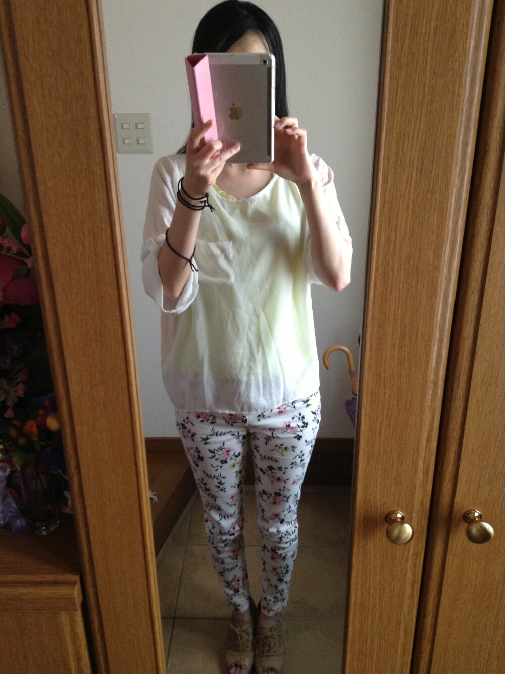トップス:JEANASIS タンクトップ:NICE CLAP パンツ:LOWRYS FARM サンダル:PAGEBOY 昨日のコーデ! さすがに夜は半袖まだ寒い😵