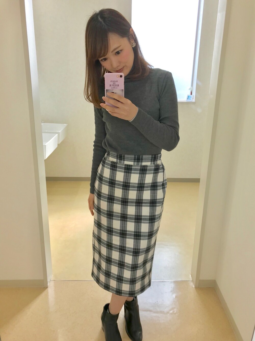 この前買ったチェックスカートに何年前に買ったかわからないニット。笑 多分10年は経ってるかな😂 久々に生足だからスースーする。。。
