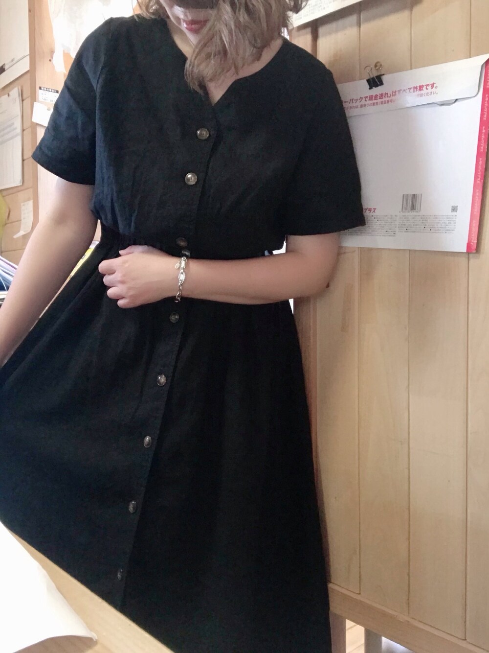 えりのワンピース「アサコンマエボタンワンピース 837720」を使ったコーディネート