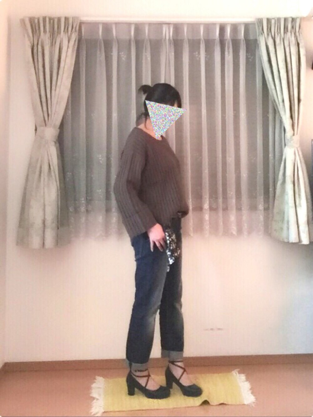 この間のタイムセールで気になっていたジーナシスの ニットを買いました😊💕 色はカーキしかなくて選べなかったけれど なんでも合わせやすそうだし形もオシャレ😆💕 やっぱり可愛い❤️ まずはデニムでシンプルに着てみました😙 分かりづらいけれど前にアンドイットで買った 花柄のスカーフ風ベルトがあったので 着けてみました😊✨ 今日は室内で撮影 眩しかったので雨戸を閉めてます💦 自撮りしやすい場所を探し中、、、