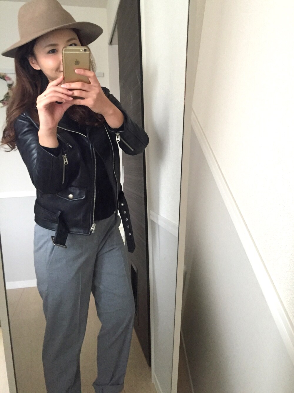 eriiiiiのライダースジャケット「beautiful people×MIDWEST 【別注】 シープレザーライダースジャケット」を使ったコーディネート