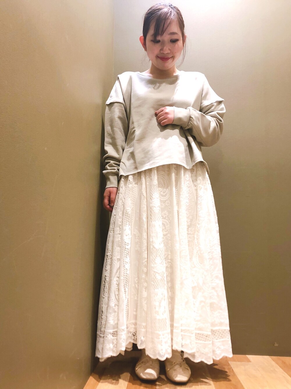 こんにちは🌸 いつもご覧いただき ありがとうございます🌟 ガーリーなレーススカートはカジュアルなトップスと合わせるとガーリーになりすぎない大人可愛いコーデに仕上がります💗 今回はカジュアルダウンさせましたが ボリュームスリーブのトップスと合わせるとデートコーデにもなるので着回し抜群です✨