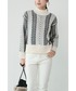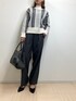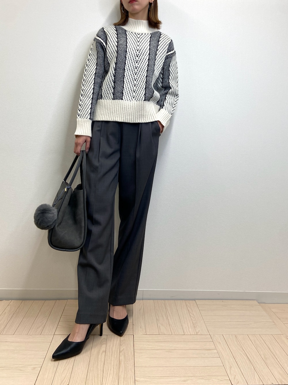 ヘリンボーンを織り交ぜたストライプ柄が目を引くニット。ギュッと目が詰まってるので暖かいんです♡ボリュームはあるけどコンパクトな丈感がスッキリ見えるポイント!