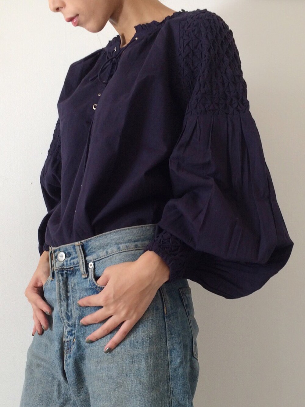 ERIのシャツ/ブラウス「KIIRAスモッキングロングスリーブブラウス/KiiRA SMOCKING LSL BL」を使ったコーディネート