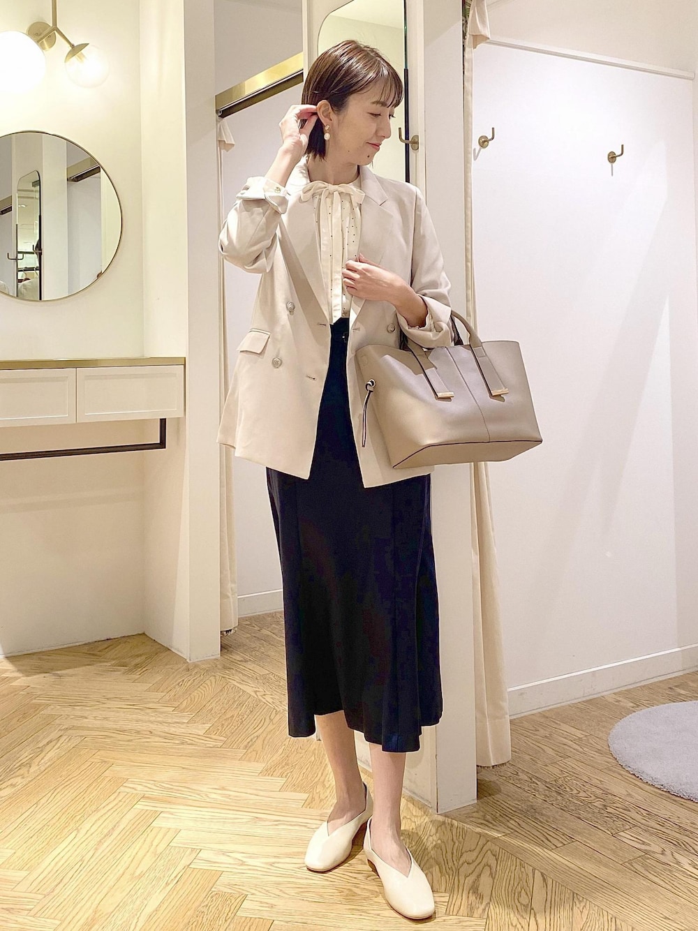 ジャケット×マーメードスカートの好感度スタイリングです!! VISで毎年大人気のマーメイドスカートは、1枚あると着回しが効くアイテムなのでオススメです⭐︎
