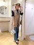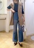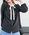 取り外せるボウタイ付きブラウスを、デニムとロングジレで合わせてカジュアルに着回ししてみました♪ 小さめのドット柄なら通勤からカジュアルな装いにも取り入れやすいです◎