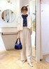 ネイビー×アイボリーの2色コーディネートです⭐︎ カラーを2色に抑えて、通勤でも着られる綺麗めシンプルなスタイリングにしました!