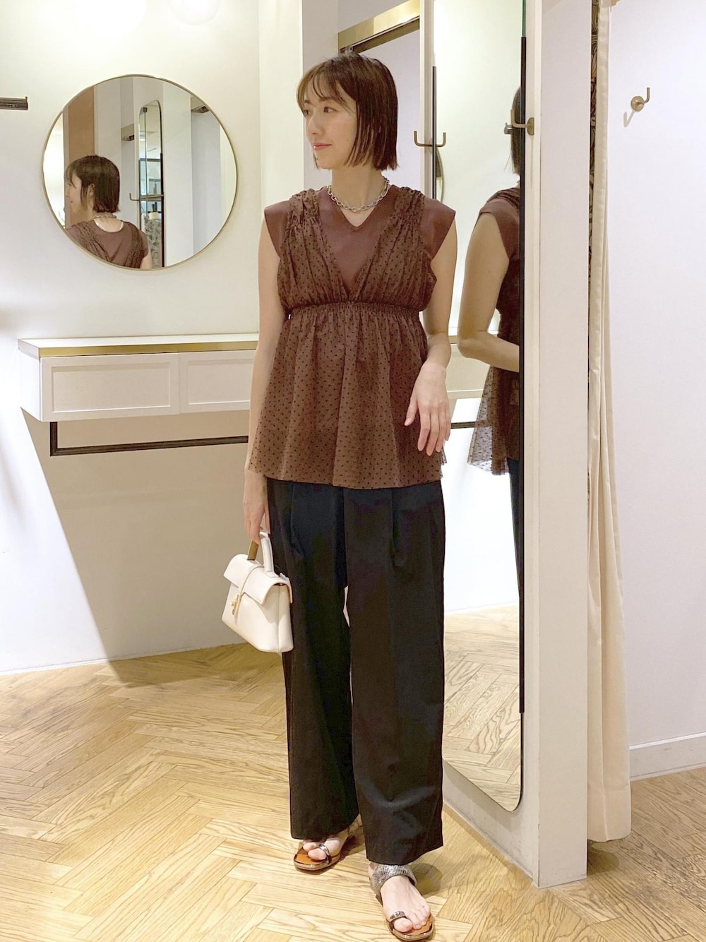 ブラウンのインナー×ブラウンのチュールチュニックでワントーンコーデにしました! チュールチュニックはインナーと同系色にすると大人女子でも甘くなり過ぎないのでオススメです⭐︎