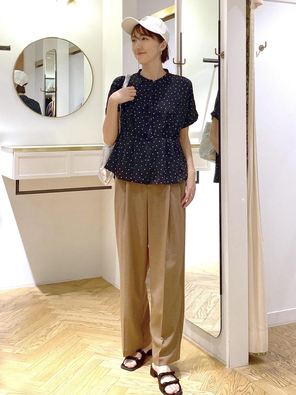 キレイめにも着られるペプラムシャツをカジュアルな旅行スタイルにしてみました! シワになりにくいブラウスは小さく畳んで持ち運びやすいので旅行にもピッタリ⭐︎