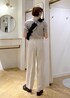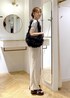 ニット×ワイドパンツのカジュアルなスタイリングに今年らしいボリュームバッグを合わせた甘カジュアルコーデ⭐︎ 甘くなりすぎないようにカラーを抑えめにしたのがポイント!