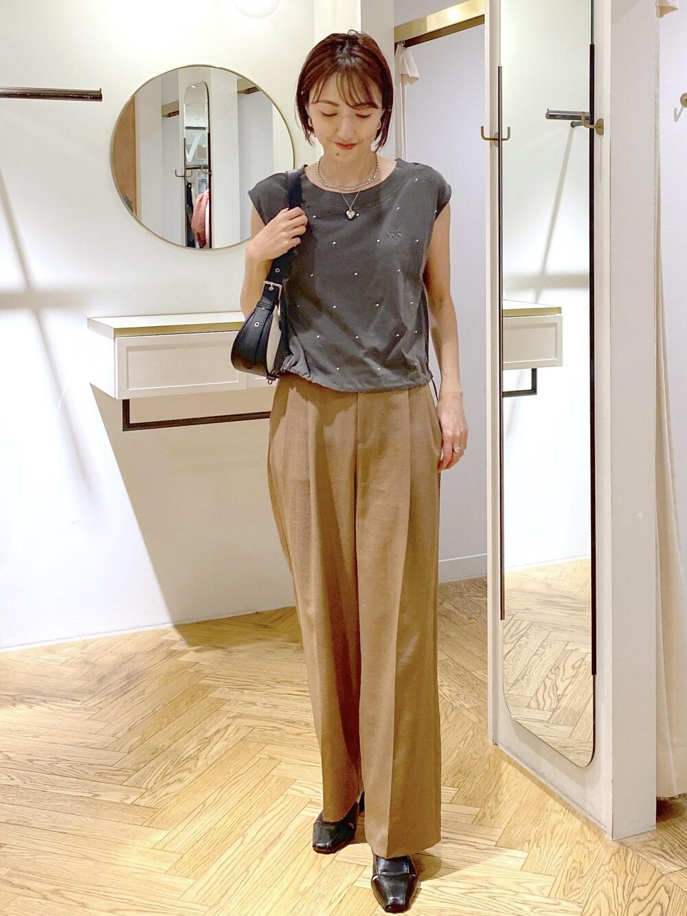 サラッと涼しい夏の通勤スタイル⭐︎ フレンチスリーブのTシャツですが、暗めなカラーを選べばカジュアルになり過ぎずオフィスカジュアルにもオススメです!
